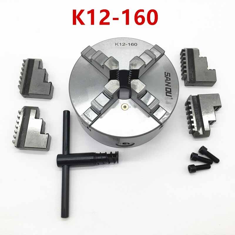 K12-160 Mâm cặp máy tiện 4 chấu tự định tâm 160mm, đầu kẹp máy tiện 4 chấu 160mm, một tấc sáu