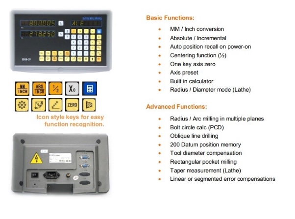 Màn Hình Hiển Thị Thước Quang 2 Trục Sterling SDS6-2V Đài Loan được sử dụng cho thiết bị cần độ chính xác của 3 trục, tăng khả năng gia công chính xác cho máy móc đã cũ, độ chính xác của vít me không còn cao.