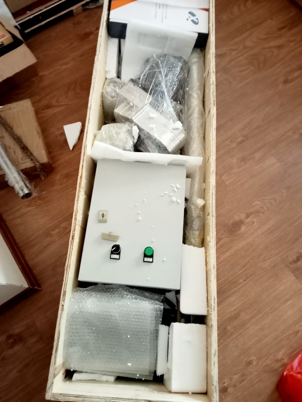 - tủ điện chứa 2 biến tần điều khiển 2 động cơ servo trên mặt có nút bật tắt.