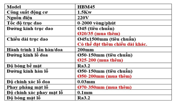 Máy có phần mở rộng doa được lỗ nhỏ hơn 50 nếu nhu cầu khách hàng cần những lỗ nhỏ thì có thể đặt thêm(Mua thêm trục doa + gối đỡ và côn có thể doa lỗ nhỏ hơn từ 30 đến 50)